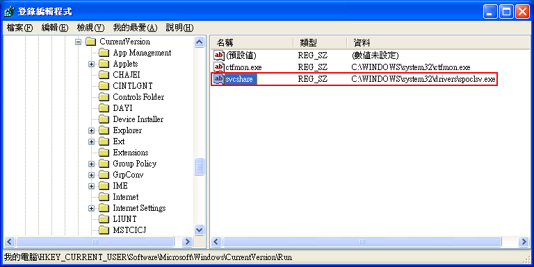 | 也要記得刪除 X:\WINDOWS\system32\drivers\spoclsv.exe (X代表系統磁碟機)。 | |
