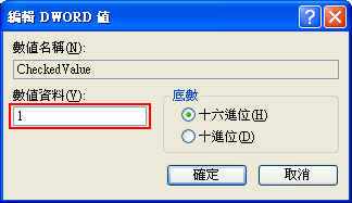 | 5. | 將下列登錄參數的值改為0x00000001 |